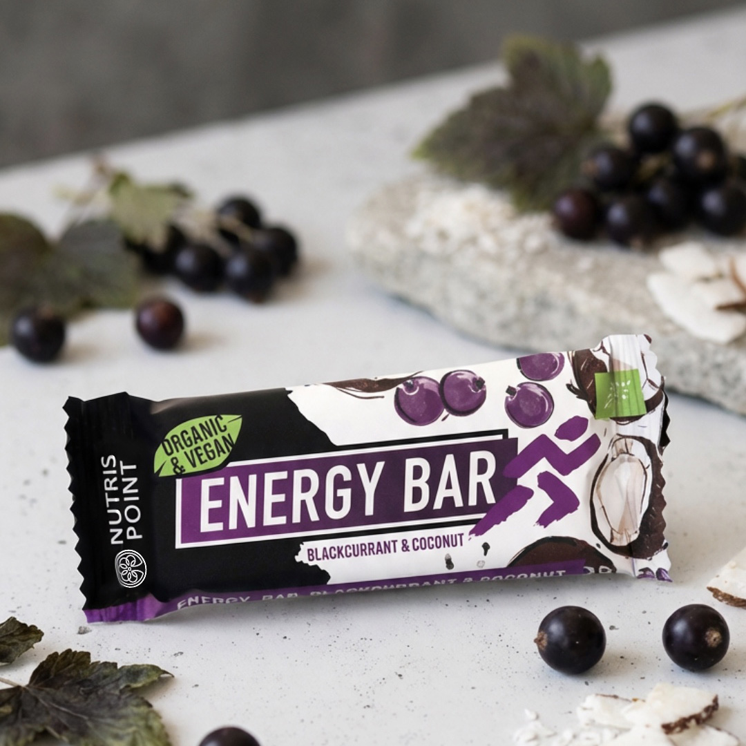 Nutrispoint premium ekološka energijska ploščica MOVE Črni ribez in Kokos vas s skrbno izbranimi sestavinami ekološkega izvora napolni z energijo in popelje novim dogodivščinam naproti!