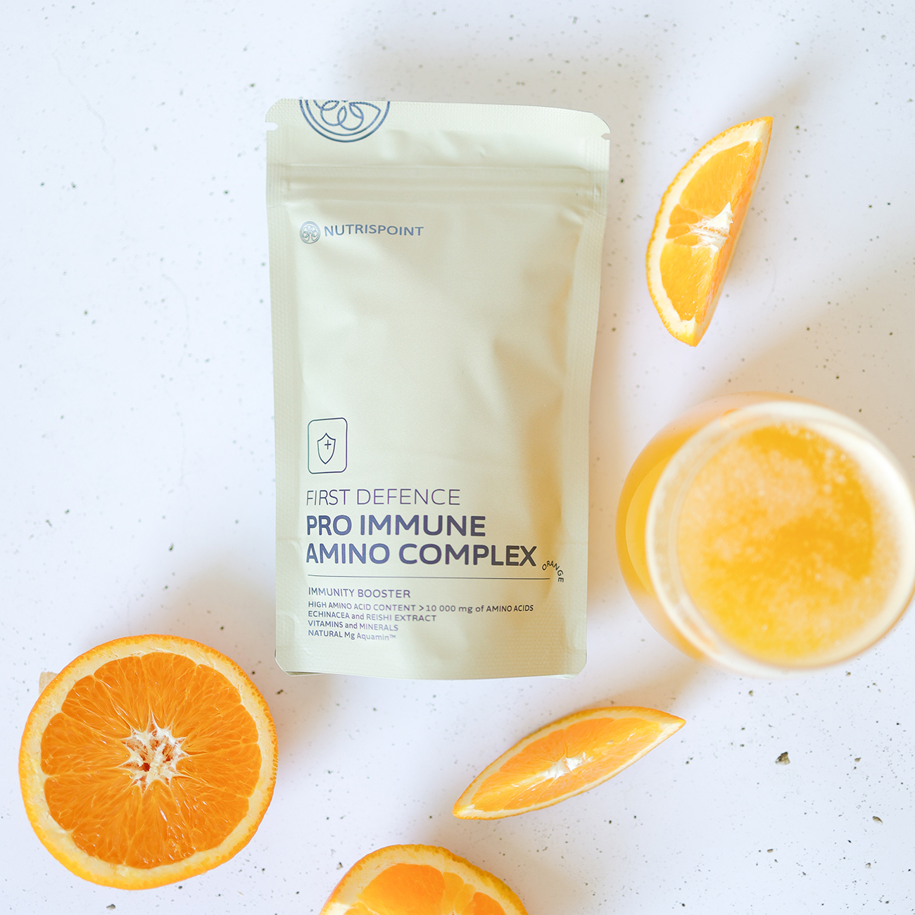 Napredna podpora imunskemu sistemu, zasnovana z visoko vsebnostjo aminokislin, multivitaminov, mineralov ter skrbno izbranih rastlinskih izvlečkov. Združuje magnezij Aquamin™, cink, vitamin C, gobo reiši in echinaceo za pomoč pri naravni imunološki obrambi, zmanjševanju utrujenosti ter ohranjanju splošnega ravnovesja organizma.