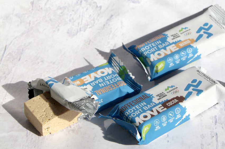 Energijske in beljakovinske ploščice MOVE vsebujejo zgolj skrbno izbrane sestavine ekološkega izvora: