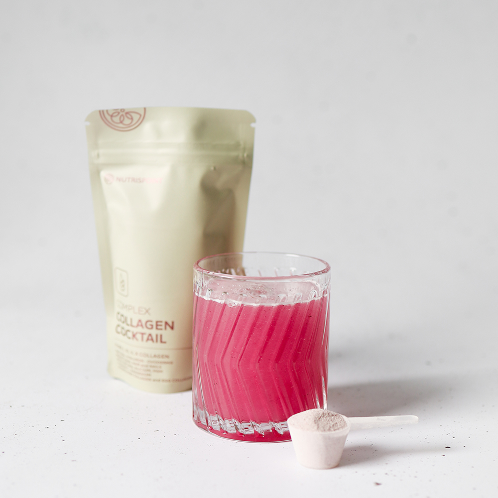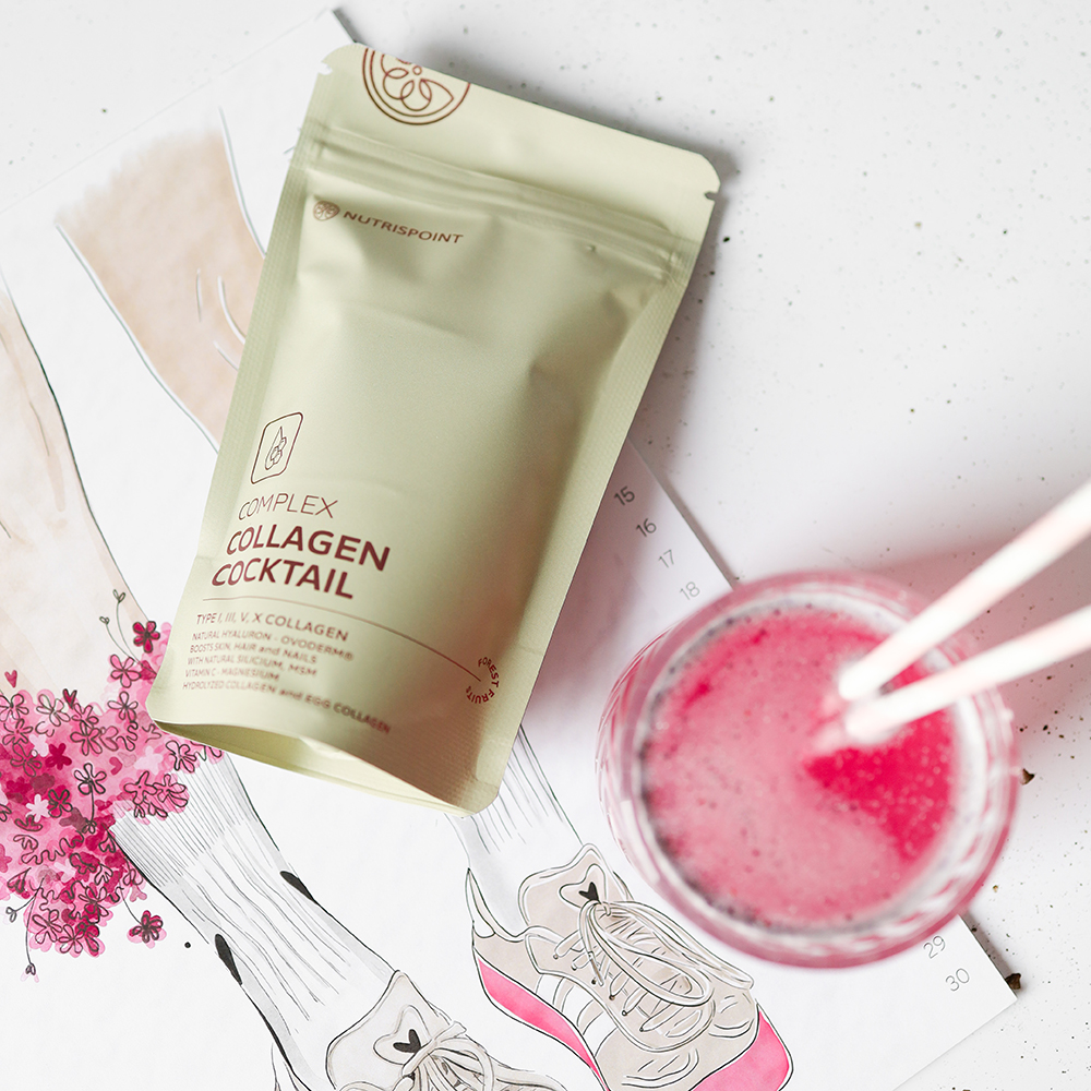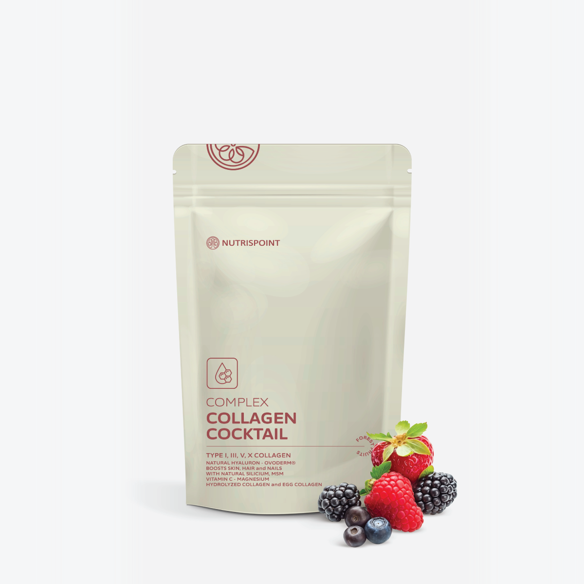 This advanced collagen formula, Collagen Cocktail, combines types 1, 3, 5, and 10 collagen, natural hyaluronic acid OVODERM®, MSM, silica, and vitamin C to support the health of skin, joints, and connective tissue.