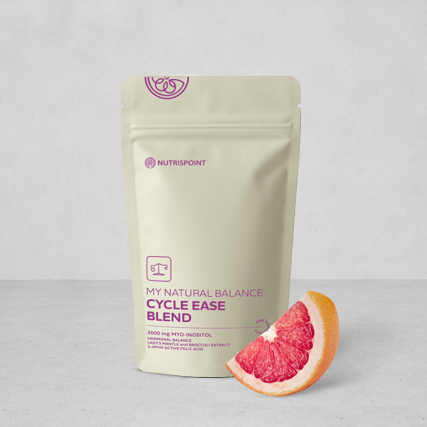 Cycle Ease Blend combines myo-inositol, folic acid (5-MTHF), coenzyme Q10, and carefully selected plant extracts to support natural hormonal balance. With added zinc, which contributes to fertility and reproduction, the blend supports female vitality and well-being throughout the cycle.