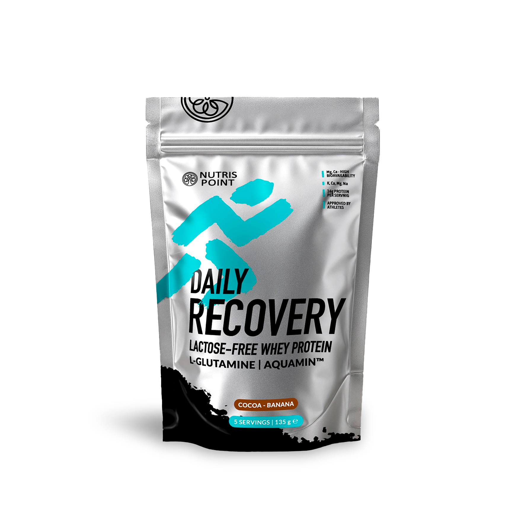 DAILY RECOVERY is a post-workout protein drink powder designed to support muscle recovery after training. Each serving provides 16 g of lactose-free whey protein, added L-glutamine, and natural Aquamin™, delivering highly bioavailable magnesium and calcium.
